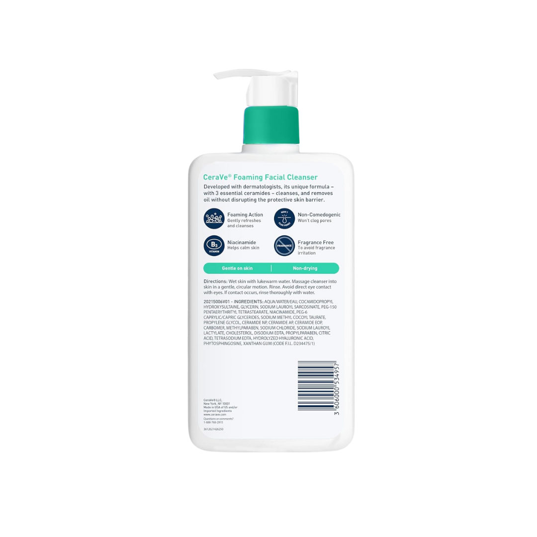 Le nettoyant moussant CeraVe nettoie en profondeur tout en respectant l’équilibre naturel de la peau. Enrichi en acide hyaluronique, niacinamide et céramides essentiels, il élimine l’excès de sébum, les impuretés et le maquillage sans agresser la peau. Convient parfaitement aux peaux normales et grasses.