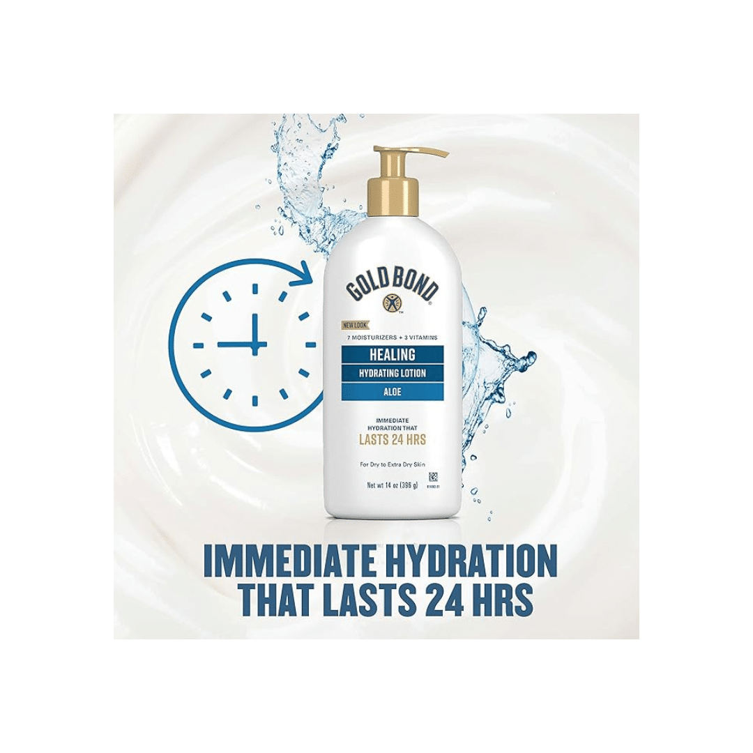 Gold Bond Healing Lotion à l’Aloe Vera hydrate en profondeur et aide à réparer la peau sèche et abîmée. Sa formule enrichie en aloe vera apaise immédiatement, renforce la barrière cutanée et procure une hydratation durable pour une peau douce, lisse et visiblement plus saine jour après jour.